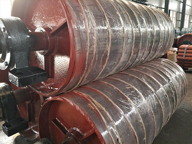 該產品主要是由軸、軸承座、輻板及筒體組成,并且在表面覆蓋橡膠以增大滾筒與輸送帶間的摩擦系數。