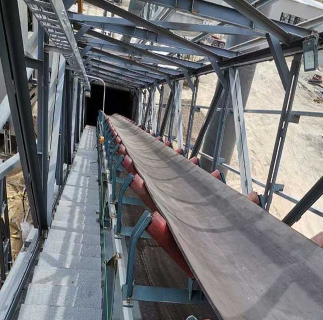 運(yùn)送機(jī)的傳動滾筒直徑與運(yùn)送帶布層的關(guān)系、傳動滾筒、改向滾筒的配套以及對托輥槽角的要求應(yīng)根據(jù)運(yùn)送機(jī)的規(guī)劃規(guī)則,合理選取。 給料方向應(yīng)順運(yùn)送帶的運(yùn)轉(zhuǎn)方向,為減小物料下落時對運(yùn)送帶的沖擊應(yīng)采溜槽,減小物料下落間隔,運(yùn)送帶受料段應(yīng)縮短托輥間距和選用緩沖托輥為漏料.帶適應(yīng)選用柔軟適度的擋料板,避免檔料板過硬,刮破運(yùn)送帶的帶面。